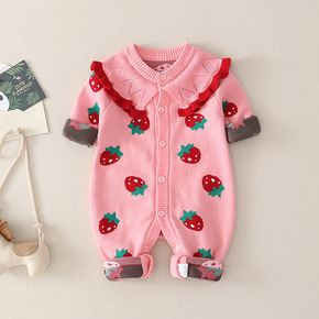 婴儿毛衣秋冬装衣服长袖0-6个月女宝宝爬服连体衣满...