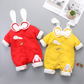 婴儿连体衣秋冬棉衣宝宝衣服冬装爬服包脚连身衣加厚冬...