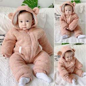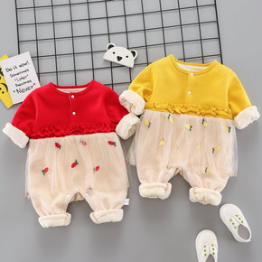 婴儿加绒连体衣女宝宝冬装0-3个月哈衣6爬服9新生...