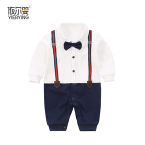 新生儿绅士爬爬潮服百日宴男孩过周岁生日连体哈衣拍照...