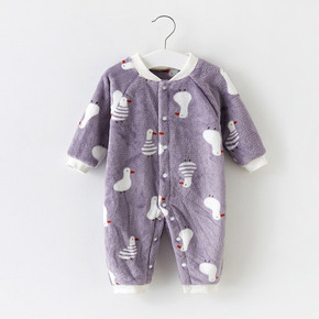 婴儿睡衣春秋冬新生儿衣服男法兰绒保暖哈衣女加厚家居...