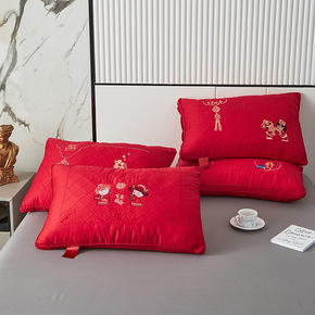 新款大红色中国风婚庆刺绣羽丝绒全 棉立体枕芯成人家...