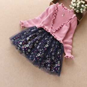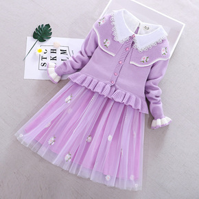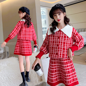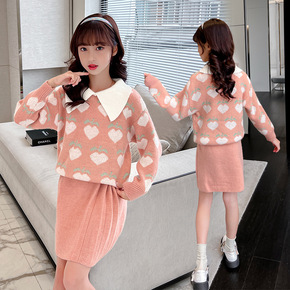 一件代货女童毛衣裙两件套儿童洋气公主裙子套装小女孩...