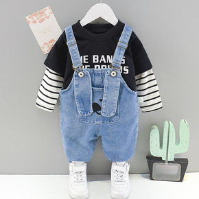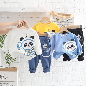 宝宝秋装新款字母卡通熊猫圆领卫衣两件套2022春秋...
