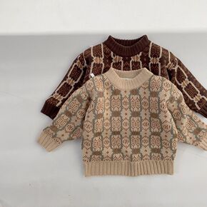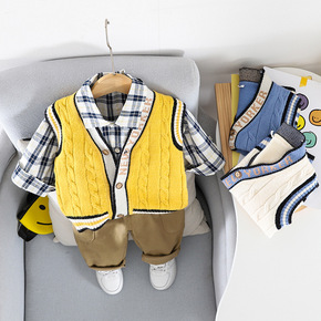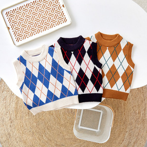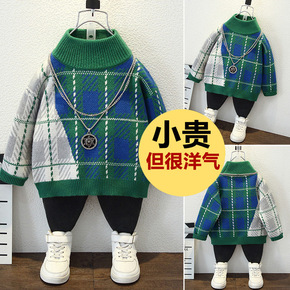 韩版童装儿童拼接毛衣2022男童秋冬季款洋气格子拼...