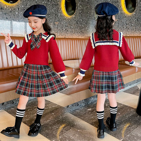女童套装2022新款秋装中大童针织裙子学院风儿童半...