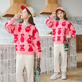 女童春秋季套装 中大童长袖圆领T恤白色长裤两件套儿...