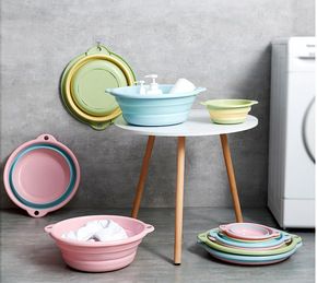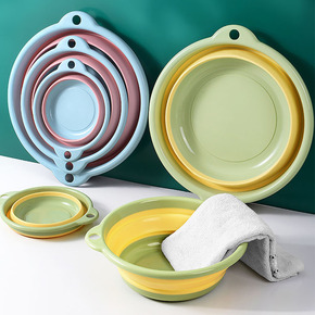 家用可折叠硅胶洗脸盆 加厚旅行大号折叠脸盆 壁挂伸...