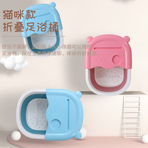 新款猫咪儿童保温泡脚桶加高深桶带盖折叠按摩足浴盆塑...
