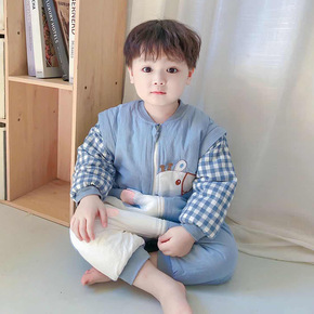 冬春秋格子秋冬季分腿长爬现货可拆洗普通迷你蓝色儿童...