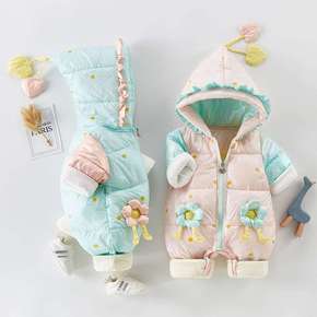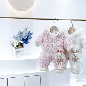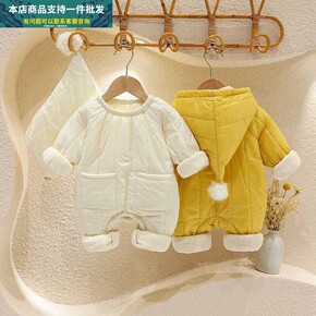 婴儿衣服加厚棉服带帽哈衣加绒外出哈衣洋气可爱抱衣宝...