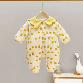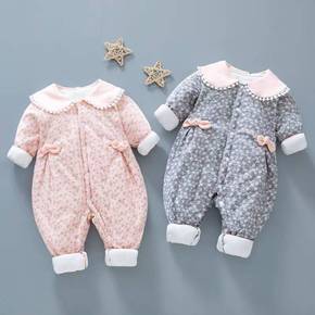 婴儿夹棉连体衣宝宝哈衣儿外出服抱衣服冬季爬服保暖加...