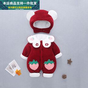 婴儿冬季外出抱衣服一月宝宝冬装羊羔绒连体衣秋冬加厚...