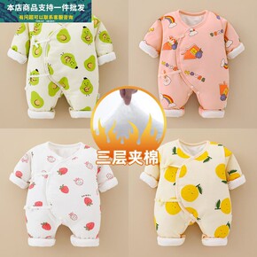初生宝宝连体衣儿保暖加厚纯棉衣服婴儿夹棉服秋冬季冬...