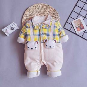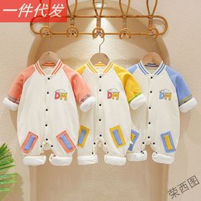 婴儿连体衣加棉加厚秋冬男宝宝哈衣爬服夹棉冬装女儿衣...