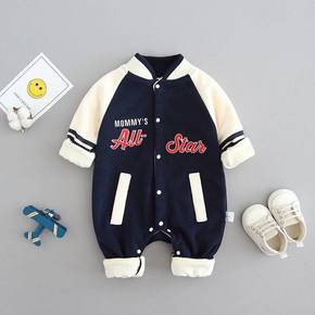 婴儿衣服春秋加绒牛仔连体衣秋装儿爬服套装棉衣宝宝外...