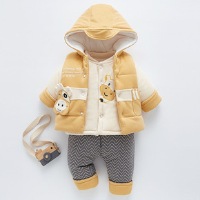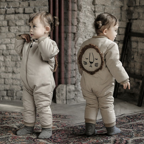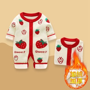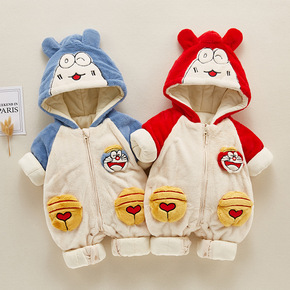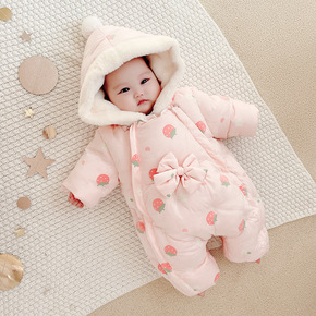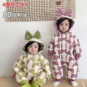 2021冬装新款羽绒棉服加绒加厚印花爬爬服宝宝哈衣...