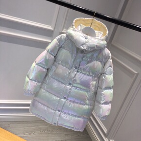 新款韩版洋气儿童耐脏款镭射炫彩真羽绒服男女童M家防...