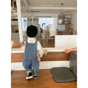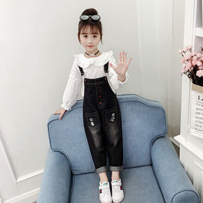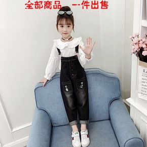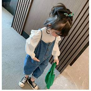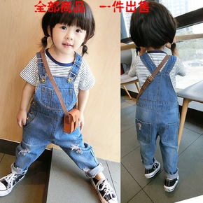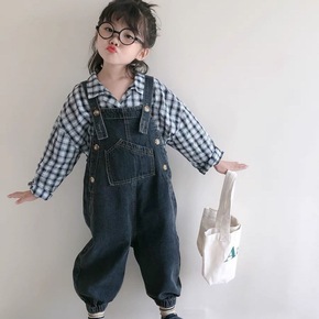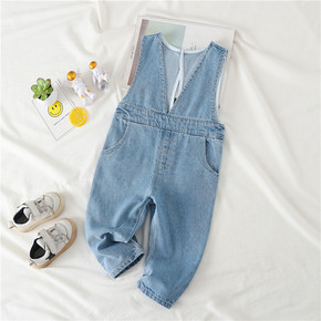 儿童背带裤童裤女宝宝软牛仔背心式背带裤小童宽松裤子...