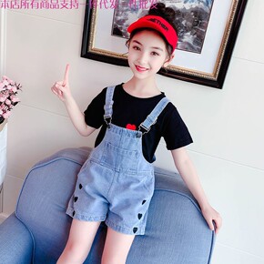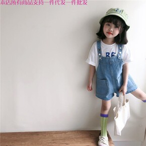 女童夏装牛仔背带裤韩版洋气2022新款儿童背带短裤...