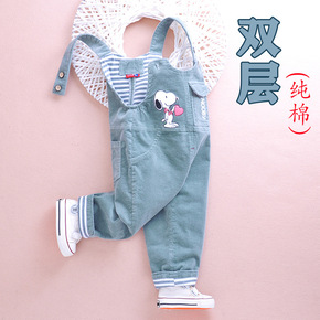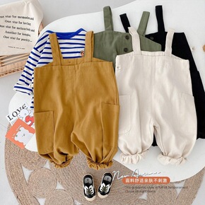 儿童背带裤童裤春宝宝棉布裤子小童吊带裤男女童外出连...