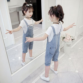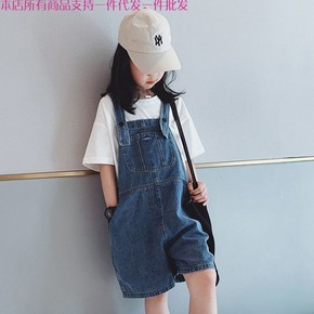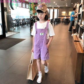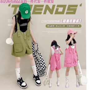 儿童背带短裤夏装2022新款中大童时尚宽松五分裤女...