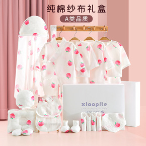 纯棉婴儿纱布礼盒套装春秋新生儿衣服初生刚出生满月宝...