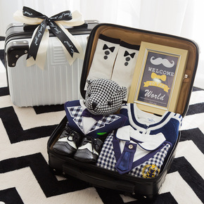 新生婴儿儿衣服套盒男孩宝宝满月礼物英伦风春秋礼盒套...