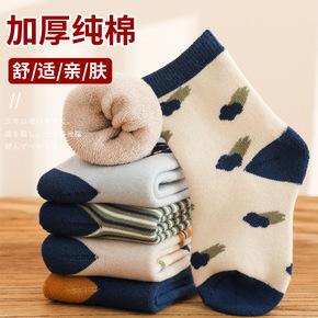 儿童袜子秋冬季地板保暖加绒加厚毛圈男童女孩中大童宝...