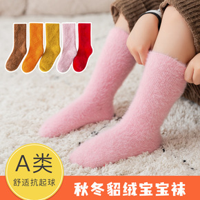 儿童中筒袜秋冬松口加绒加厚儿童袜子仿貂绒不勒腿宝宝...
