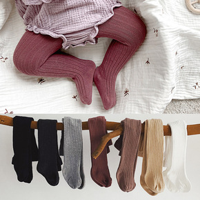 is韩国婴儿连裤袜春秋冬装纯色坑条宝宝双针打底裤保...