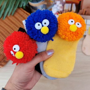 2021秋冬季毛圈儿童袜子可爱卡通毛球眼睛棉袜子潮...