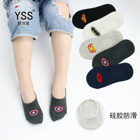 儿童袜子夏季新款漫威英雄学院风超人蜘蛛侠隐形袜硅胶...