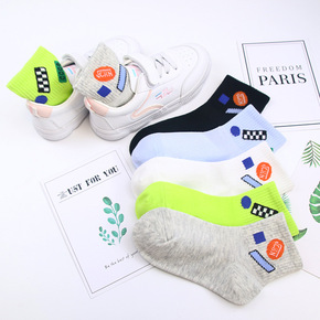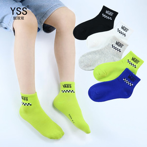 儿童袜子懿双双春夏新款韩版棋盘格字母短袜精梳棉男童...