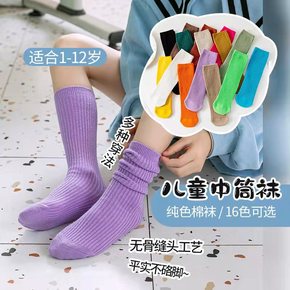 韩版2021秋冬纯色堆堆袜直板儿童袜子均码无后跟女...
