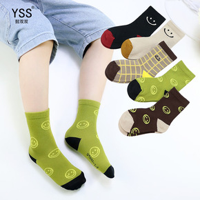 儿童袜子懿双双秋冬新款加厚韩版笑脸格子中筒袜精梳棉...