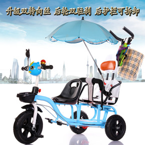 儿童三轮车双人脚踏车双胞胎三轮车婴幼儿推车玩具前后...