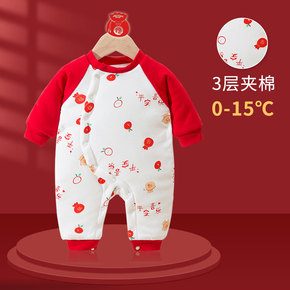 【无惧寒冷】婴幼儿女宝冬季喜庆加厚大红年服90白鸭...