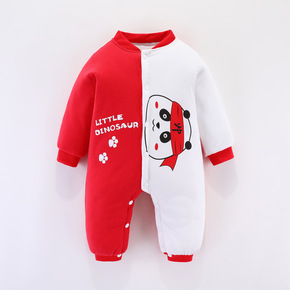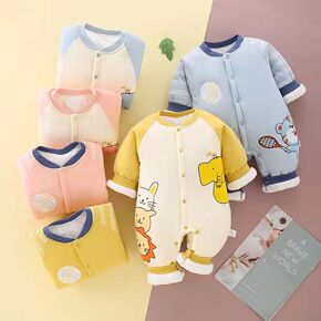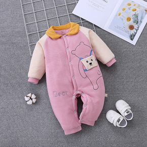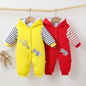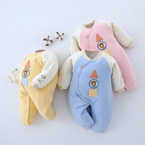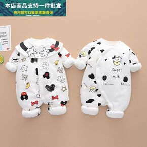 婴儿夹棉连体衣秋冬保暖外出初生纯棉可爱洋气男女宝宝...
