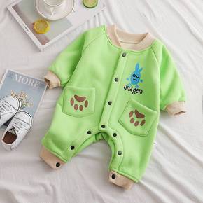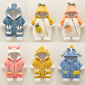 跨境跨境0-2岁婴儿莓加绒连体衣冬季衣服女宝宝外出...