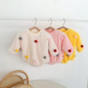 婴儿衣服秋冬装加绒保暖连体衣网红宝宝超萌可爱球球包...