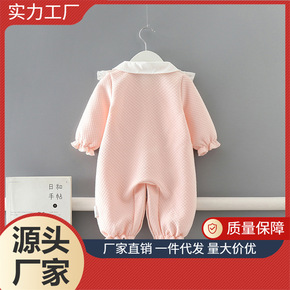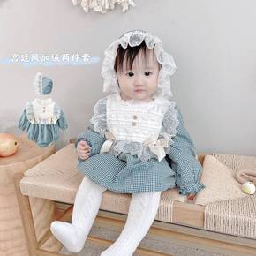 女宝宝冬季连体衣加绒婴儿秋装宫廷风长袖哈衣套装公主...