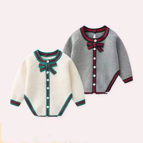婴儿冬装新生儿衣服女宝宝连体衣针织毛衣满月哈衣外出...