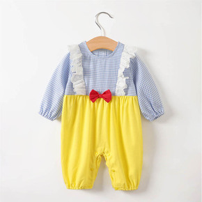 2021冬季新品婴儿连体衣格子背带裤长袖加厚爬爬服...
