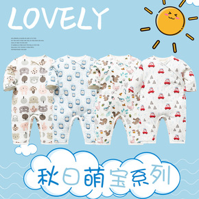 婴儿衣服秋装新生儿连体衣网红婴儿服女宝宝满月百天公...