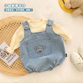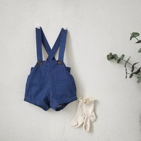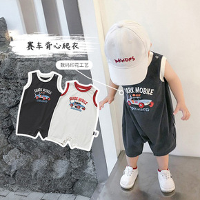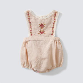 跨境专供ins童装春夏新款包臀连身衣宝宝棉麻爬服儿...