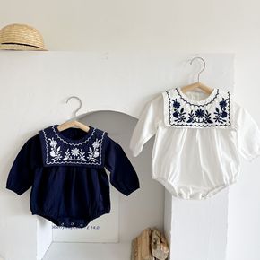 婴儿连体衣2021秋季韩系绣花海军领女宝宝包屁衣长...