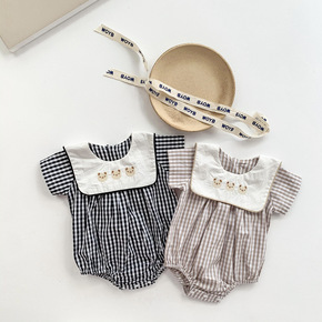 新生儿连体衣小方格精梳纱布连体哈衣儿童短袖透气舒适...