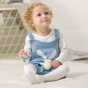 婴儿服装哈衣速卖通爆款春秋卡通兔子针织吊带连体爬服...