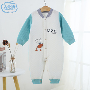 人之初婴儿连体衣夹棉春秋款初生宝宝保暖衣纯棉哈衣新...